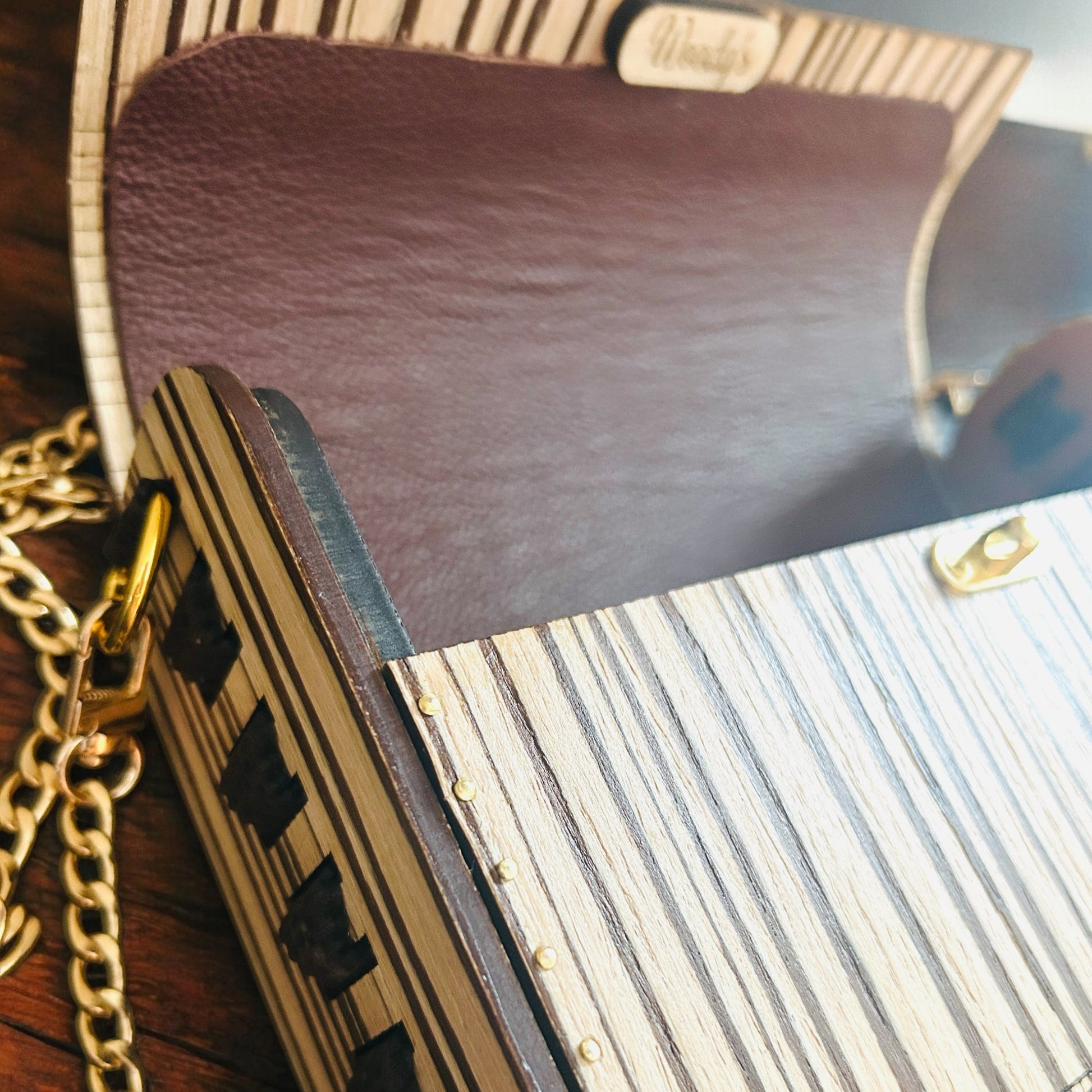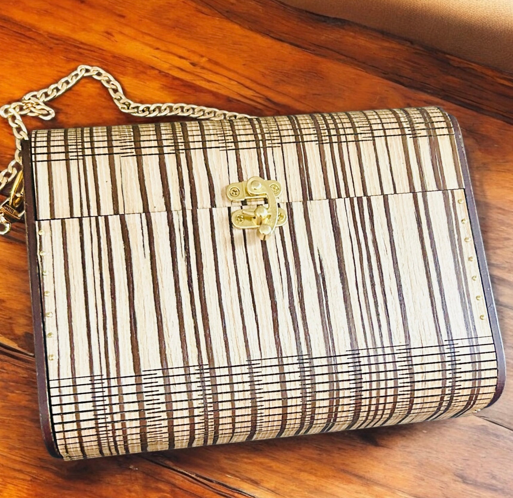 Measuring approximately 9 inches wide by 6 inches tall, this elegant purse features a sleek and compact design, perfect for carrying your essentials in style. Made from premium wood, every curve and engraving is crafted with precision, highlighting the natural beauty of the material. This Cafe Collection Woody is not just an accessory—it's a statement piece that combines timeless elegance with innovative artistry.