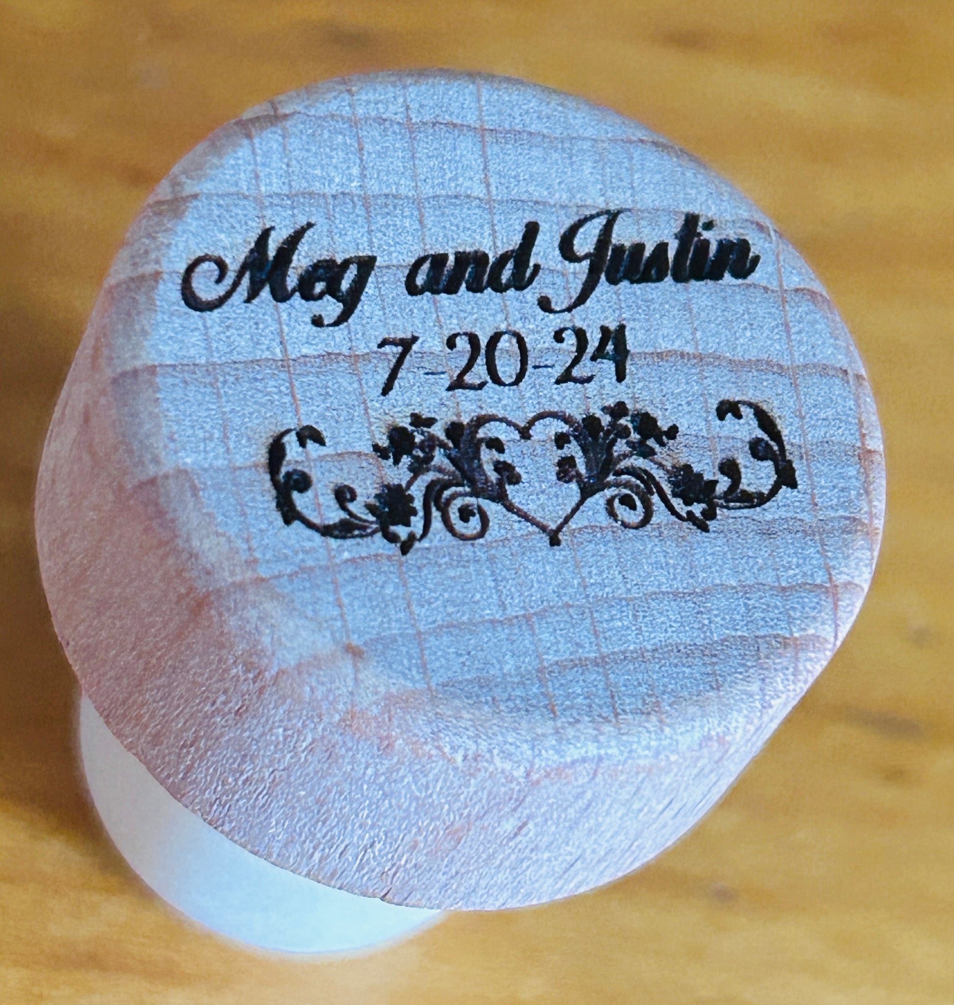 Wood wine bottle stoppers are the perfect favor for special events, such as weddings and bridal showers. Let Woody's create that special custom design just for you. Custom Wine Stoppers, Wedding Favors for Guests, Personalized, Bridal Shower Gift, Party Favors, Business Promotional Item.